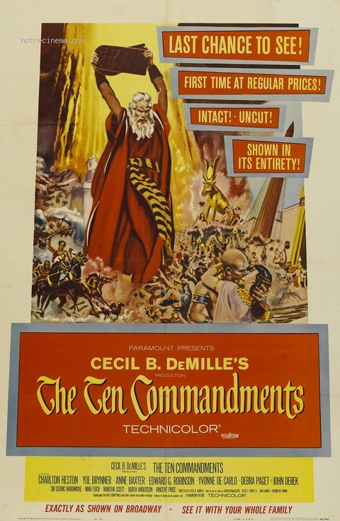 Les Dix Commandements (The Ten Commandments). 1954. Réalisation de Cécile B. de Mille. Distribution : Charltion Heston, Yul Brynner, Edward G. Robinson, Anne Baxter, Vicent Price. Paramount Pictures. Technicolor. 222 min.